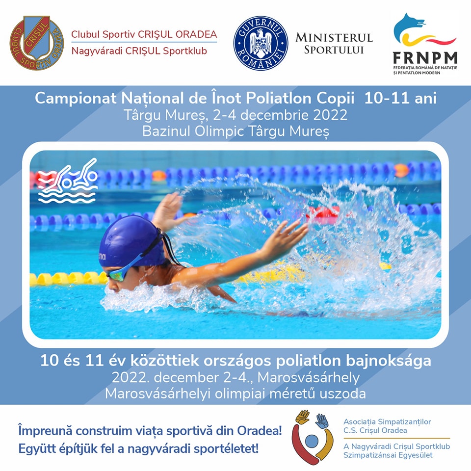 December 2-4. között Marosvásárhelyen az olimpiai méretű uszodában kerül megrendezésre a 10 és 11 év közöttiek országos poliatlon bajnoksága, amelyen a következő versenyzők képviselik klubunkat: