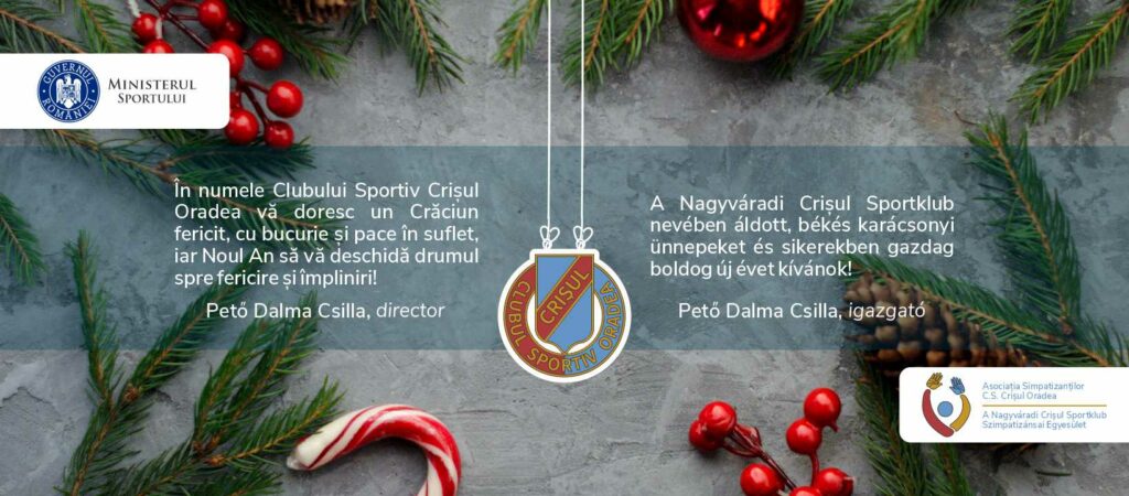 A Nagyváradi Crișul Sportklub nevében áldott, békés karácsonyi ünnepeket és sikerekben gazdag boldog új évet kívánok!