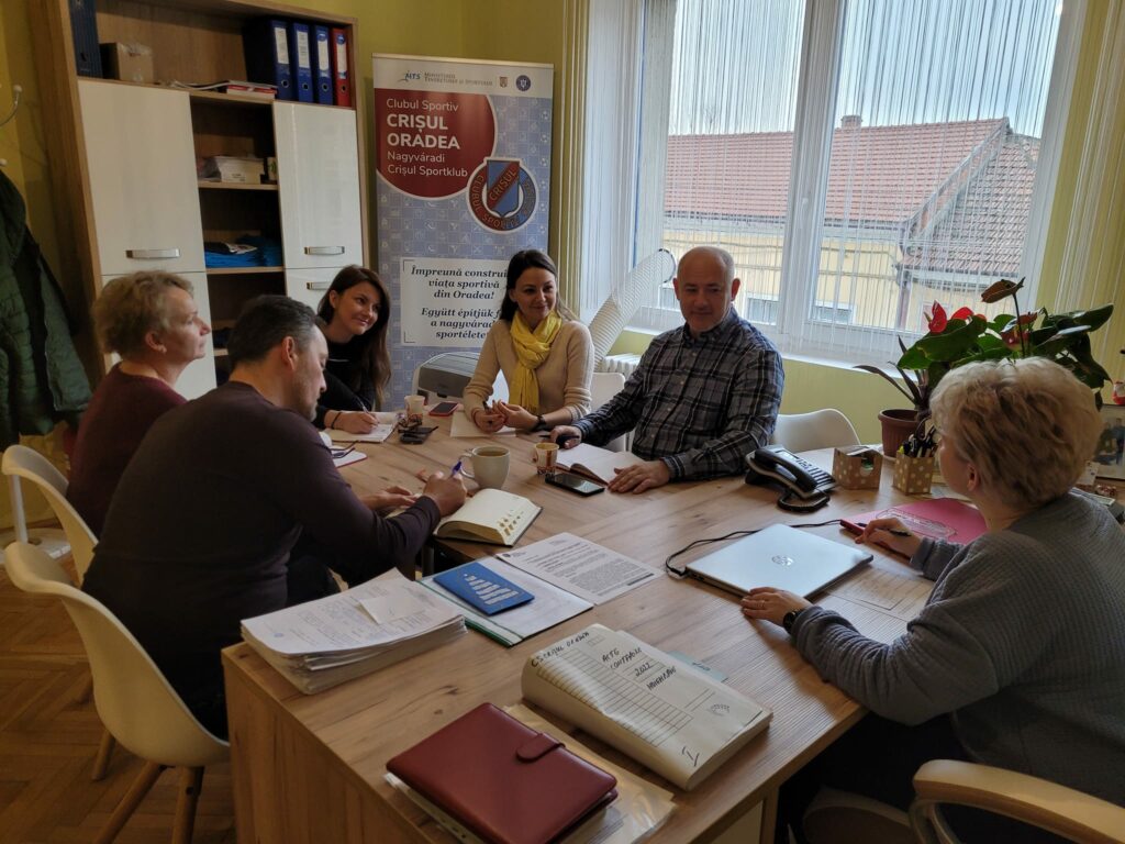 A mai napon az irodákban dolgozó munkatársakkal – Popa Carmennel (szaktanácsadó), Kuntz Anikóval (főkönyvelő), Debreczeni Edinával (tanácsadó), Goina Cosminnal (sportszakértő/szakosztályért felelős) és Tulkos Rómeóval (szakosztályért felelős) – közös megbeszélésre került sor, amelyet Pető Dalma Csilla igazgató vezetett.