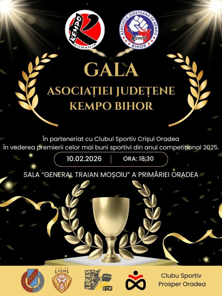 În calitate de membru fondator al Asociației Județene de Kempo Bihor, suntem onorați de invitația de a participa, în calitate de partener, la prima gală de premiere a Kempo-ului din Bihor, programată marți, 10 februarie 2026, ora 18:30, în Sala Traian Moșoiu din cadrul Primăriei Oradea.