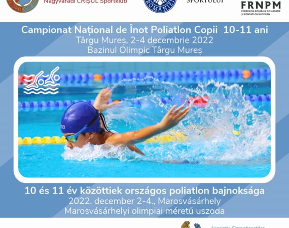 | În data de 2-4 decembrie va fi organizat la Târgu Mureş Campionatul Naţional de Înot Poliatlon Copii (10-11 ani) în Bazinul Olimpic. Iată sportivii care vor concura reprezentând clubul nostru: Kovács Petra Tirla Sofia Kirei Barna Rácz Leo Kovács Dávid Cefan Casian Melniciuc Dan Tasyürek Levente Antrenori: Madău Cristina,...