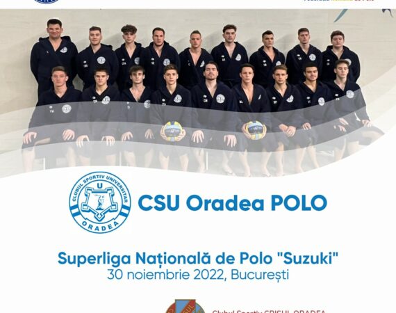 Superliga Națională de Polo "Suzuki" 30 noiembrie 2022 Bazinul Steaua 12.00: Hello Sport ️CSU Oradea Bazinul Rapid 20.00: Rapid Bucureşti CSU Oradea Componenții echipei 1. Abrudan Șerban2. Terean Sergiu3. Turculeț Daniel4. Chioveanu Mihnea5. Costa Maximilian6. Codilă Bogdan7. Dumitru Patrick8. Insinna Tommaso9. Cărăman Luca10. Szilágyi Erik11. Haşaş Roland12. Păşcăluță Adrian13. Șandru...