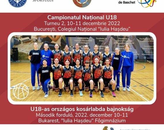 | Campionatul Naţional U18 feminin. Turneu 2. Programul meciurilor echipei noastre Sâmbătă 10.12.2022,15.00:ACS Champions Bucureşti CRIȘUL ORADEA Duminică 11.12.2022,11.00:Baschet Club Dan Dacian CRIȘUL ORADEA U18-as női kosárlabda-bajnokság, második találkozó. Íme a csapatunk versenyprogramja Szombat 2022. december 10.,15.00:Bukaresti Champions NAGYVÁRADI CRIȘUL Vasárnap 2022. december 11.,11.00:Dan Dacian Kosárlabda Klub NAGYVÁRADI CRIȘUL Antrenori/Edzők:...
