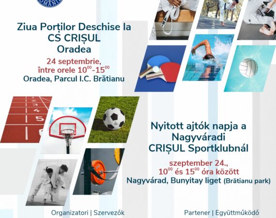 | Dacă îți dorești ca într-o zi să devii campion, vino la acțiunile noastre să ne cunoști activitatea, antrenorii și sportivii care au adus glorie orașului nostru Detalii în eveniment: https://www.facebook.com/events/780417733077583/?ref=newsfeed Ha egy napon bajnokszeretnél lenni, gyere el szombaton, hogy megismerkedj sportklubunk tevékenységével, edzőivel és azokkal a sportolóinkkal, akik dicsőséget...
