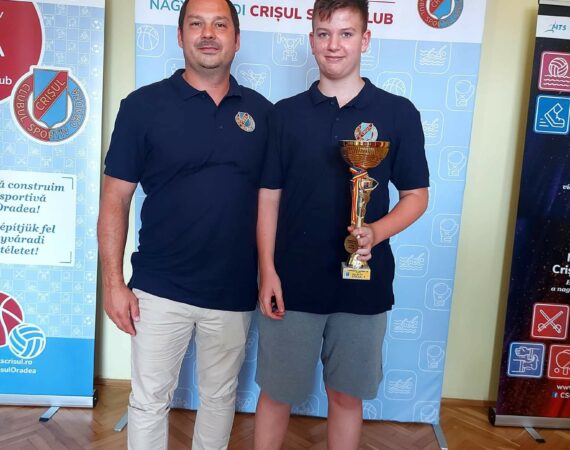 | Antrenorul echipei de polo copii U13, Diaconu Nicolae şi căpitanul echipei Boros Dávid.Echipa de copii U13 - Campioni naționali în sezonul competițional 2021/2022. Az U13-as gyermek vízilabda csapatunk edzője, Diaconu Nicolae és a csapatkapitány, Boros Dávid.Az U13-as gyermek csapatunk országos bajnok lett a 2021-2022. évi bajnokságban. Echipa | A...