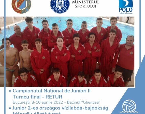 Începând de vineri 08.04.2022 la Bazinul Ghencea din București va avea loc returul turneului final al Campionatului Naţional Juniori II. Programul meciurilor echipei noastre Vineri, 8 aprilie:Triumf Bucureşti CRIŞUL ORADEA Dinamo București CRIŞUL ORADEA Sâmbătă, 9 aprilie:CRIŞUL ORADEA CSM Oradea Steaua București CRIȘUL ORADEA Duminică, 10 aprilie:CRIŞUL ORADEA CSM Cluj-Napoca...