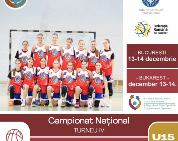 | Campionat Național U15 - baschet feminin, turneul IV. Iată programul echipei noastre Sâmbătă, 13 decembrie 2025:13.00: CSM București CRIȘUL Oradea Duminică, 14 decembrie 2025:10.00: CRIȘUL Oradea Bega Timișoara Componența echipei | A csapat összetétele:Abrudan OlgaÁron HannaBagoși BrendaBan SoranaBâlcu Iulia MălinaBențe ElisaBerindei Breja AlexandraDruțu SaraHălmăgean NataliaHorváth AbigailNedelcu Ilisie RaniaTeodorof Ștefania...