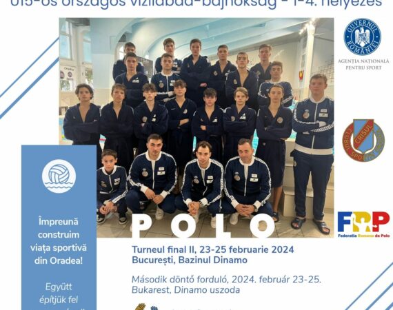 | Campionat Național Juniori U15, turneul final 2, locurile 1-4. Programul echipei noastre Vineri, 23 februarie 2024:19.30: Unirea Alba Iulia CRIȘUL Oradea Sâmbătă, 24 februarie 2024:20.00: CRIȘUL Oradea Steaua București Duminică, 25 februarie 2024:10.30: Dinamo Bucureşti CRIȘUL Oradea Echipa | A csapat: 1. Holhoş Darius2. Boros Dávid3. Barta Patrick5. Dunca...