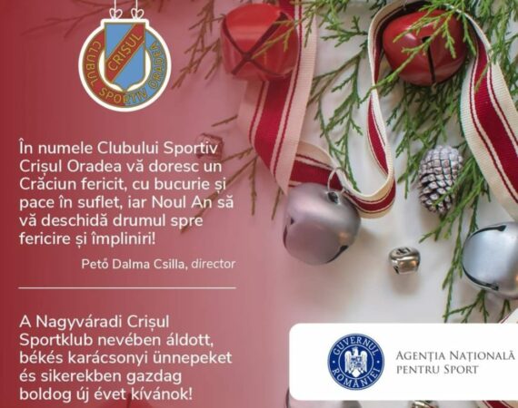 În numele Clubului Sportiv Crișul Oradea vă doresc un Crăciun fericit, cu bucurie și pace în suflet, iar Noul An să vă deschidă drumul spre fericire și împliniri! PETŐ Dalma Csilladirector A Nagyváradi Crișul Sportklub nevében áldott, békés karácsonyi ünnepeket és sikerekben gazdag boldog új évet kívánok! Pető Dalma Csillaigazgató...