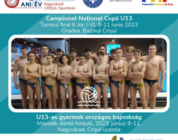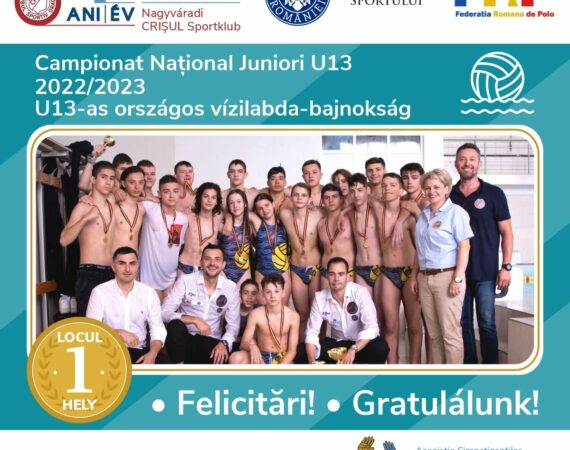 | Medalie de aurobținută de echipa U13 la Campionatul Nanțional de Juniori U13 Antrenor: Antonio Alexandrescu Expert sportiv: Cosmin Goina CS CRIŞUL OradeaCS Dinamo București Aquasport Târgu Mureş Az U13-as országos vízilabda-bajnokság döntő fordulójában a nagyváradi Crişul csapataaranyérmes lett Edző: Antonio Alexandrescu Szakosztályfelelős: Cosmin Goina. Nagyváradi CRIȘUL SportklubBukaresti DinamoMarosvásárhelyi Aquasport...