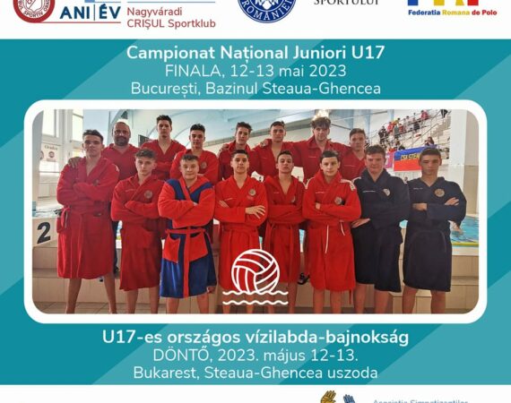| Programul Campionatulului Național U17, FINALA Vineri, 12.05.2023:18.30: Steaua Bucureşti CSM Oradea - SF 120.00:Dinamo BucureştiCRIȘUL Oradea-SF2 Sâmbătă, 13.05.2023:10.00: Pierzătoare SF 1Pierzătoare SF 211.30: Câştigătoare SF 1 Câştigătoare SF 2 Az U17-es vízilabda - bajnokság döntőjének a programja Péntek, 2023. május 12.:18.30: Bukaresti Steaua ️Nagyváradi VSK-120.00: Bukaresti Dinamo Nagyváradi CRIȘUL-2...