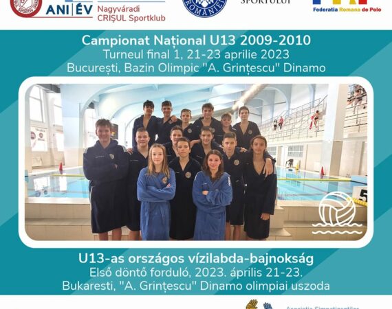 | Programul echipei noastre la Campionatul Național de U13, turneul final 1 Vineri, 21.04.2023:8.15: CRIȘUL Oradea ACS Atack Team20.45: Amefa Arad CRIȘUL Oradea Sâmbătă, 22.04.2023:10.45: CRIȘUL Oradea Steaua București19.30: Aqua Sport Tg. MureşCRIȘUL Oradea Duminică, 23.04.2023:9.45: Dinamo Bucureşti CRIȘUL Oradea A csapatunk programja az U13-as vízilabda - bajnokság első döntő...