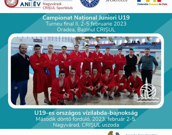 | Campionatul Național de U19, primul turneu final. Iată rezultatele obținute CRIȘUL OradeaPartizan Târgu Mureş - CRIȘUL Oradea Viitorul Cluj-Napoca - CSM Cluj-Napoca CRIȘUL Oradea - CNER București CRIȘUL Oradea - CRIȘUL Oradea Dinamo București - CRIȘUL Oradea CSS Nr. 1 București - Steau București CRIȘUL Oradea - U19-es vízilabda...