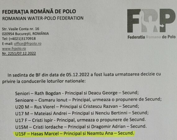 | În urma hotărârii Biroului Federal antrenorul Haşaş Marcel a fostnumit antrenor principal pentru lotul feminin de U15 A vízilabda szövetség döntéshozó fóruma határozatának az értelmében Haşaş Marcel edzőt az U15-ösleány válogatott edzőjének nevezték ki Felicitări! | Gratulálunk! #ClubulSportivCrişulOradea#poloCrişul#NagyváradiCrişulSportklub#managementCrişul