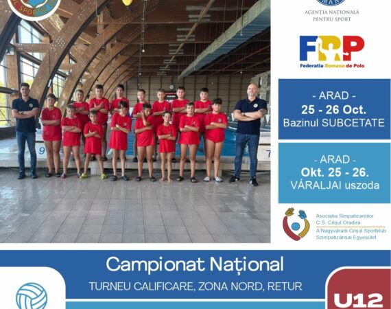 | Programul echipei noastre la Campionatul Național U12, turneu calificare, zona nord, retur: Sâmbătă, 25 octombrie 2025:10.00: CRIȘUL Oradea Amefa Arad17.00: ️Partizan Târgu Mureş CRIȘUL Oradea Duminică, 26 octombrie 2025:10.00: CRIȘUL Oradea Corona Braşov Echipa | A csapat:1. Brade Cătălin Daniel2. Szathmáry Ákos Olivér3. Kardos Miklós Sándor4. Bogdándi Matei5. Tokár...
