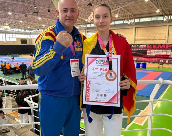 S-a încheiat prima zi de competiție în cadrul Campionatului European de Kempo din Spania , care a adus și prima medalie pentru delegația noastră. Cotuț Denisa Andrada (antrenor Romeo Tulkos), legitimată la secția de kempo, a clubului nostru, a obținut medalia de bronz la proba de kata individual, senior feminin!...