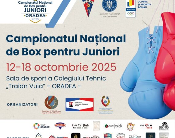 Campionatul Național de Box pentru Juniori la Oradea! Programul competiției:● 13 octombrieora 15:00 – Deschiderea oficialăora 16:00 – Începerea meciurilor● 14 – 17 octombriezilnic de la ora 15:00 – Meciuri eliminatorii● 18 octombrieora 11:00 – Finalele și festivitatea de premiere Locația: Sala de sport a Colegiului Tehnic Traian Vuia, Oradea...